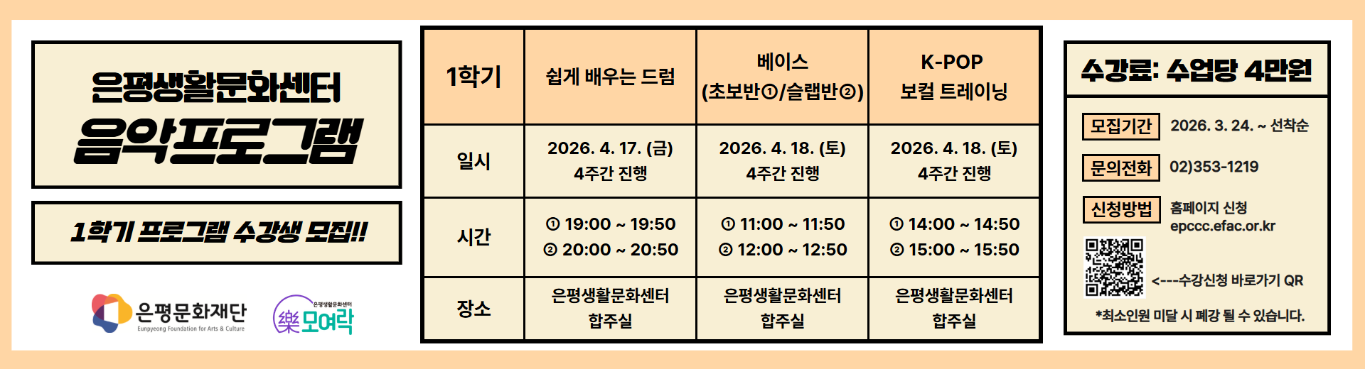 2026 은평생활문화센터 1학기 음악프로그램 안내 및 수강생 모집