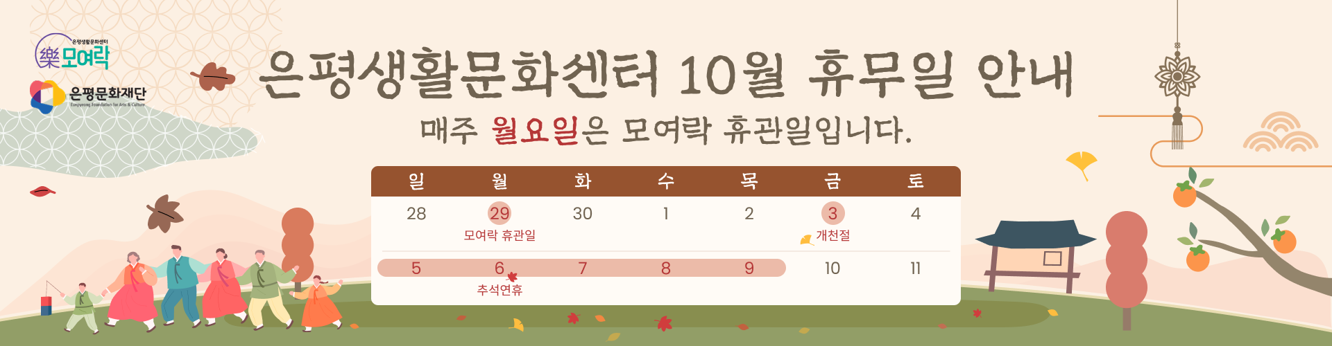 은평생활문화센터 2025년 10월 휴무안내