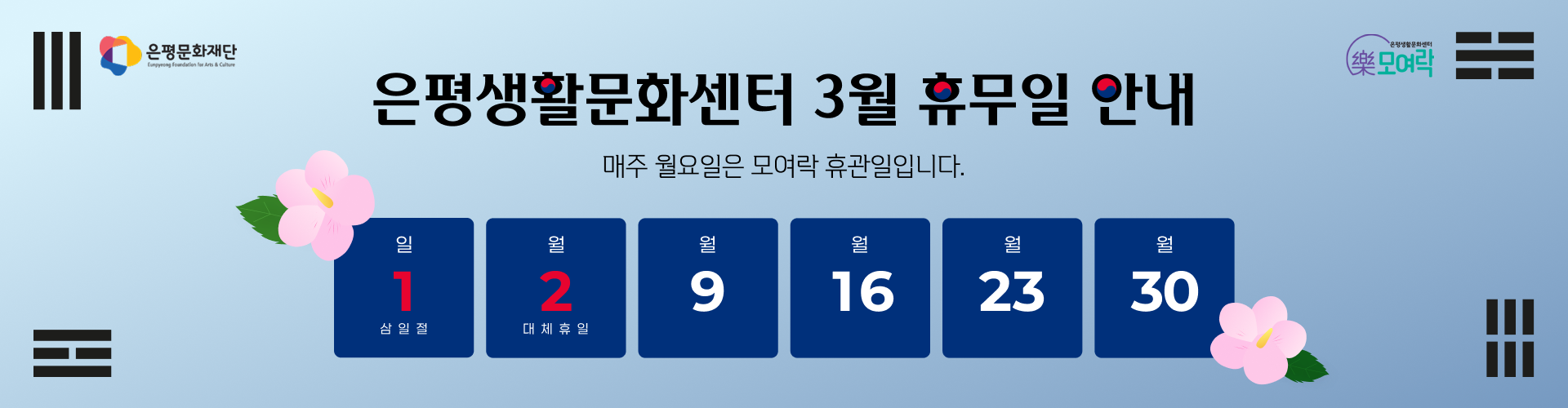 은평생활문화센터 2026년 3월 휴무안내