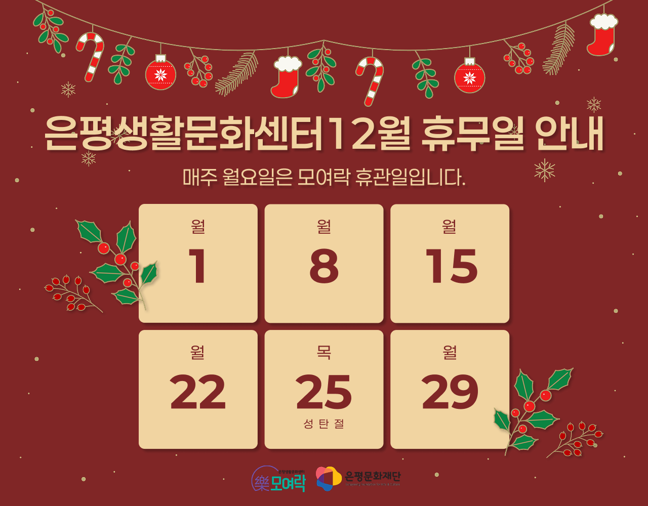 은평생활문화센터 2025년 12월 휴무안내
